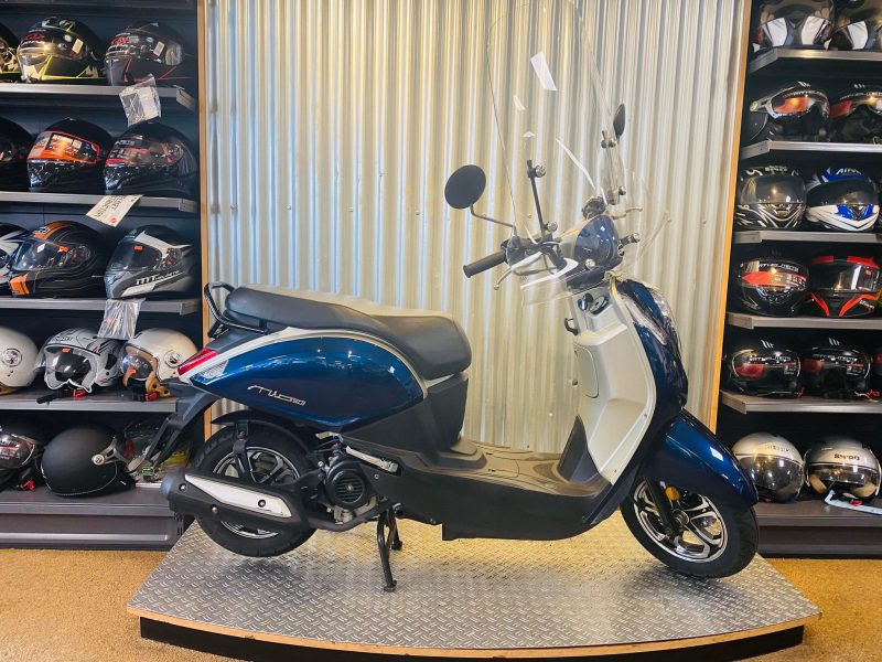 Deze scooter is voorzien van een extra beugelset windscherm en een koffer!
